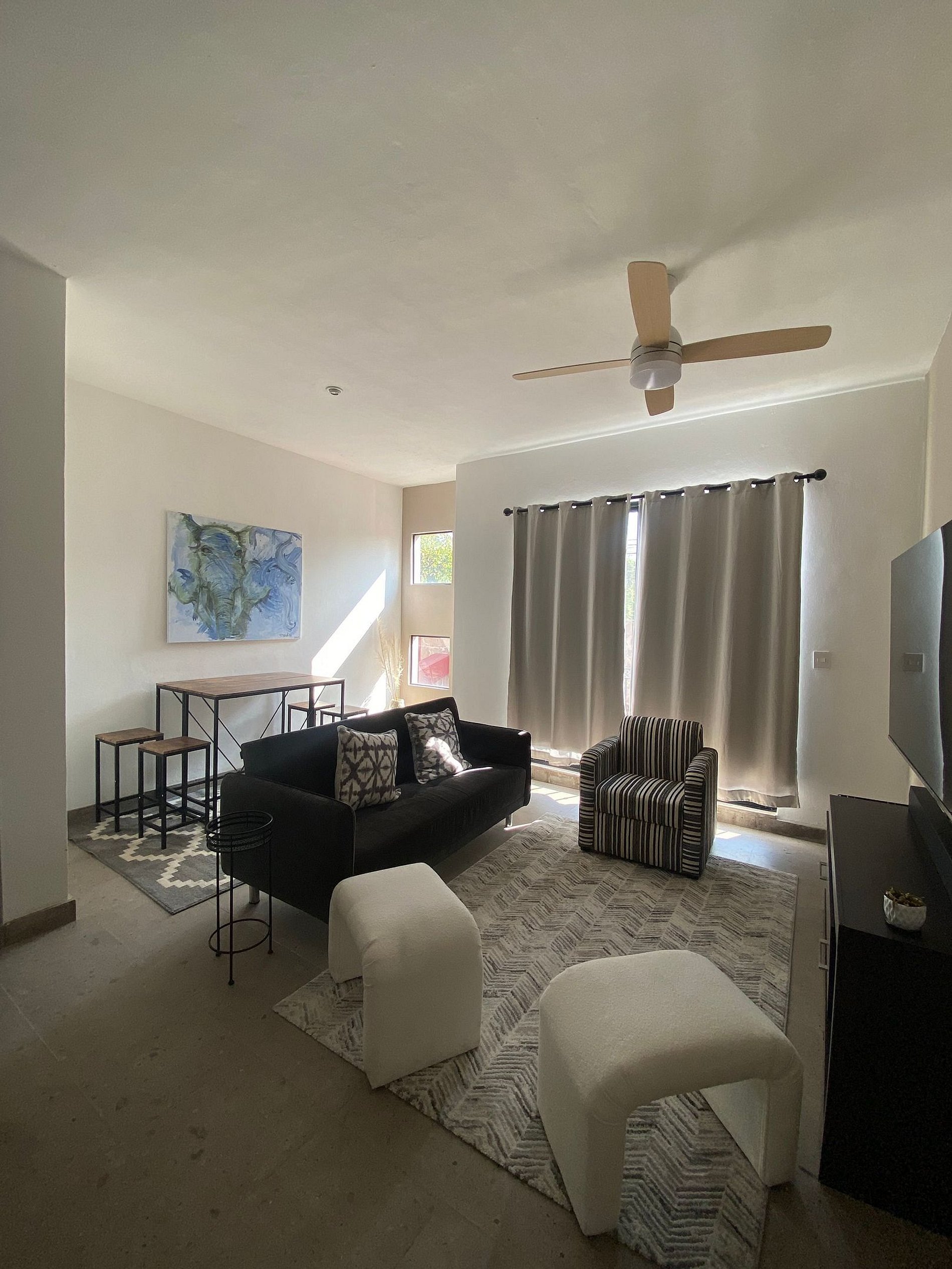 Este acogedor departamento, ubicado en tercer nivel está diseñado para brindarte una estancia cómoda, funcional y relajante. Cuenta con 2 habitaciones, cocina totalmente equipada, sala, comedor, TV, equipo de sonido, WiFi, y 2 baños completos, ofreciéndote todo lo necesario para sentirte como en casa desde el primer momento.