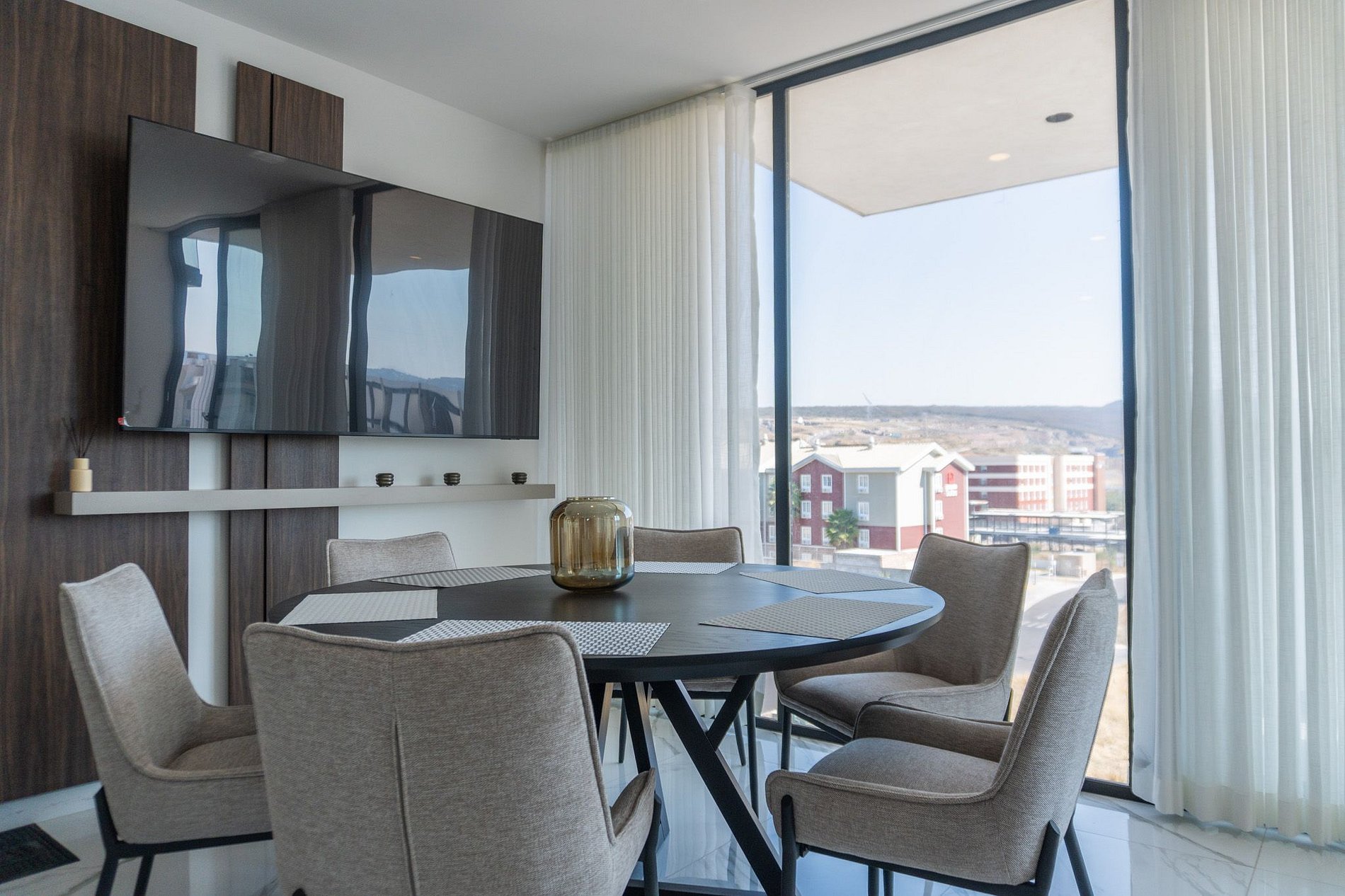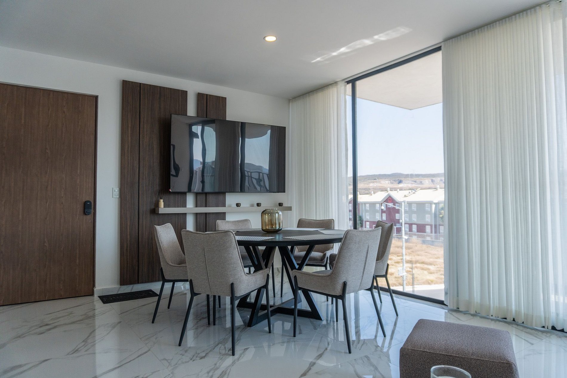 Este espacio es especial por su internet de alta velocidad con fibra óptica, ideal para home office, y por contar con 3 pantallas modernas para disfrutar de entretenimiento en todo momento. Su ubicación es inmejorable, justo a la entrada de Juriquilla, en una zona segura y de fácil acceso a restaurantes, centros comerciales y vialidades principales. Al ser un departamento totalmente nuevo, ofrece una experiencia moderna, cómoda y cuidada en cada detalle, ideal para estancias cortas, medias y largas, con amenidades premium en Grand Living.