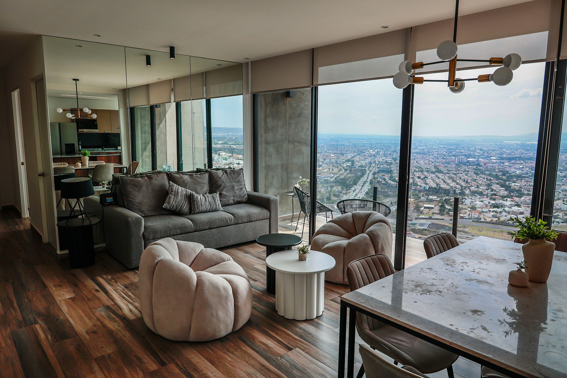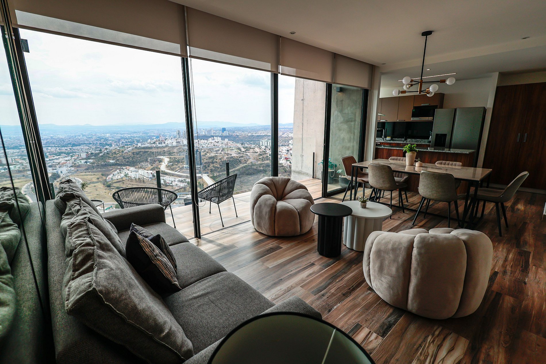 Despierta con vistas espectaculares de Querétaro desde tu terraza privada y vive una estancia de alto nivel. Disfruta la alberca y relájate en el jacuzzi del edificio después de un día de trabajo o paseo y mantente conectado con wifi de alta velocidad ideal para trabajo remoto. Perfecto para parejas, familias o ejecutivos. Acceso inteligente sin llaves y amenidades exclusivas que elevan tu experiencia.