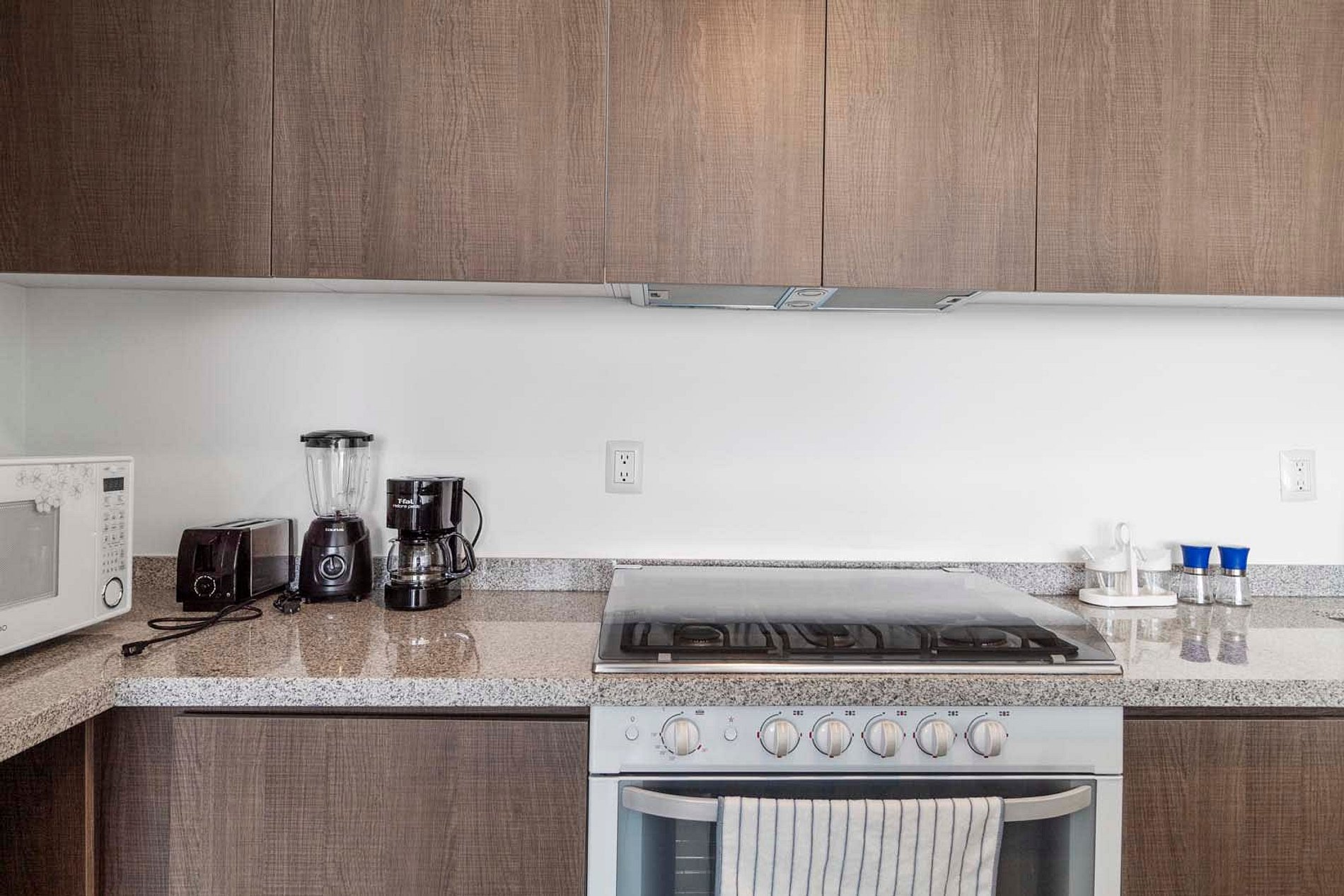 Durante tu estancia, disfruta de amenidades como alberca, gimnasio, áreas verdes y espacios para relajarte o convivir.