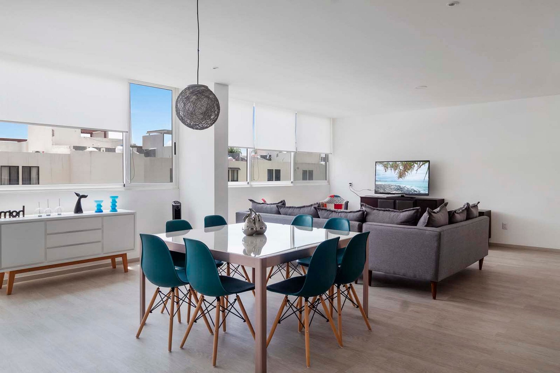 Vive la experiencia de Life Juriquilla, un moderno condominio en una de las zonas más exclusivas de Querétaro. Este amplio departamento ofrece 3 recámaras, 2.5 baños, sala, comedor y cocina equipada.