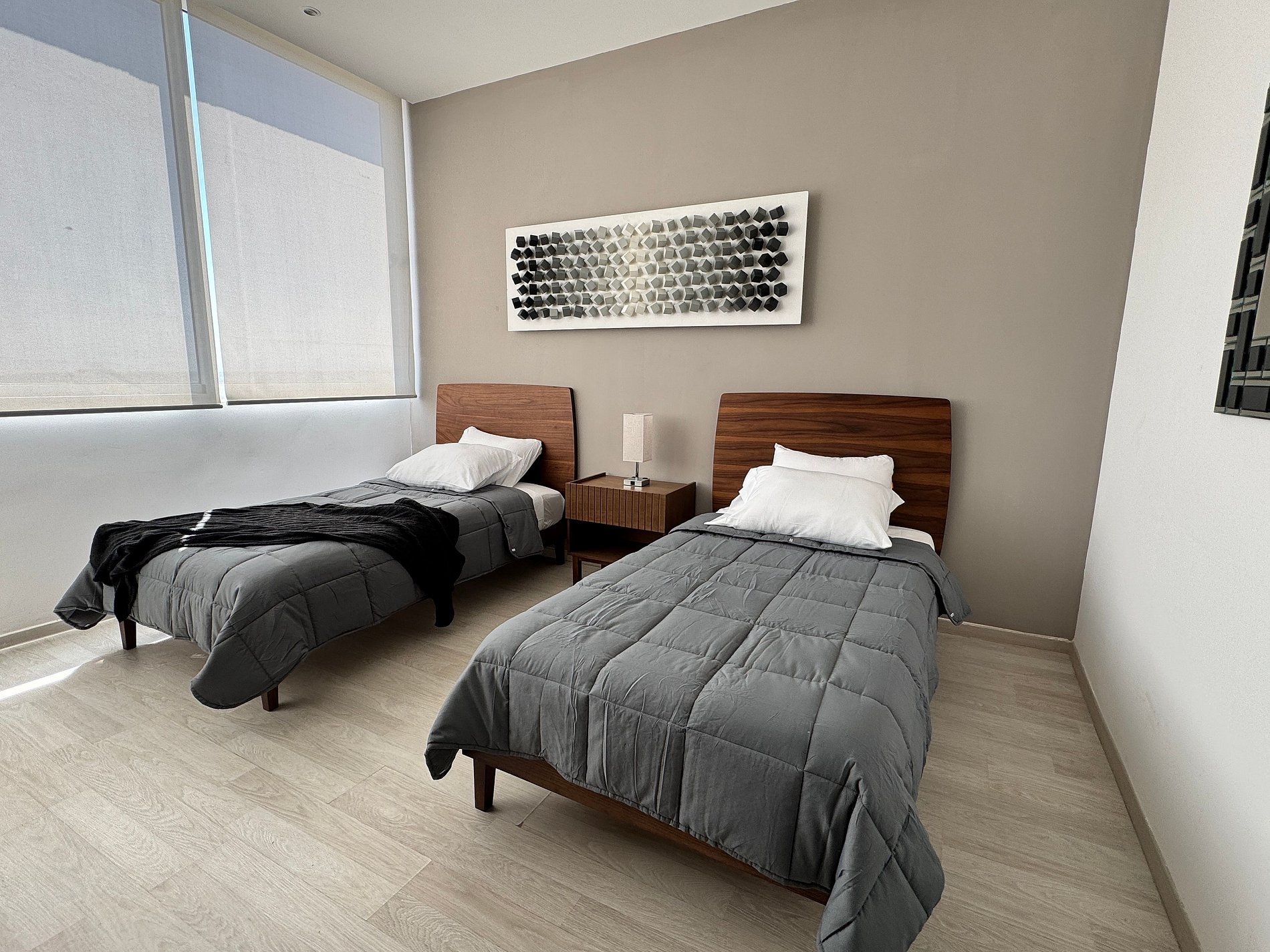 Este departamento de 184.53 m2 es ideal para recibir a 6 personas cuenta con 3 habitaciones, la principal con cama king size, vestidor y baño completo. Las recamaras secundarías con dos camas individuales, dos baños completos adicionales uno de ellos con bidet.