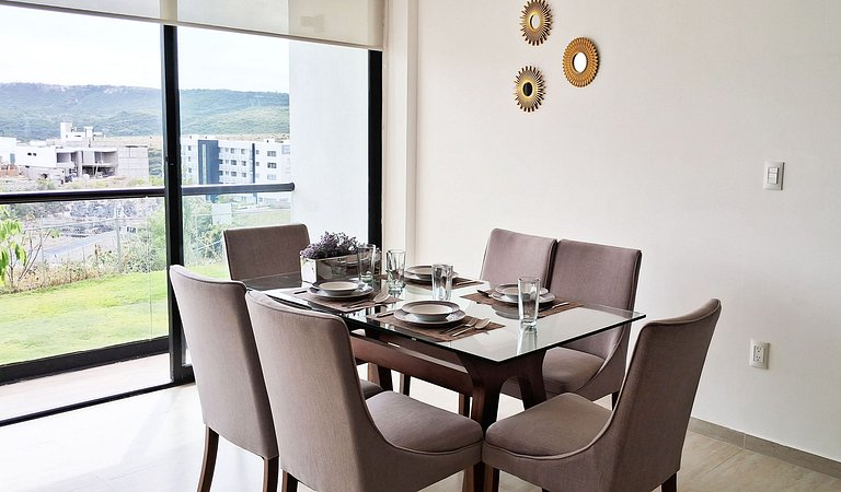 El condominio ofrece más de 1300 m2 de áreas verdes, increíbles vistas a la presa del Batán, sin dejar de mencionar sus acabados de primera calidad y diseño vanguardista.