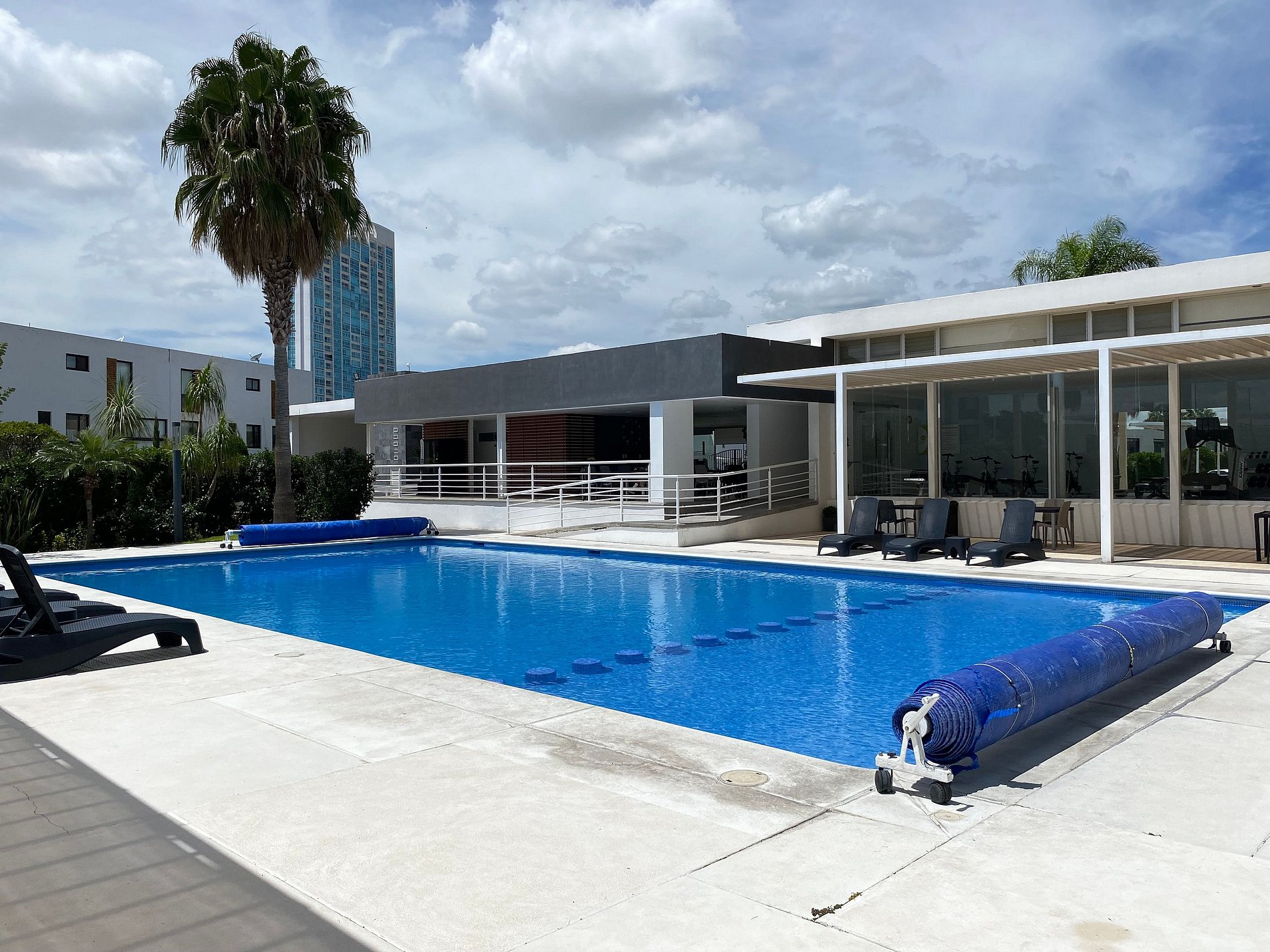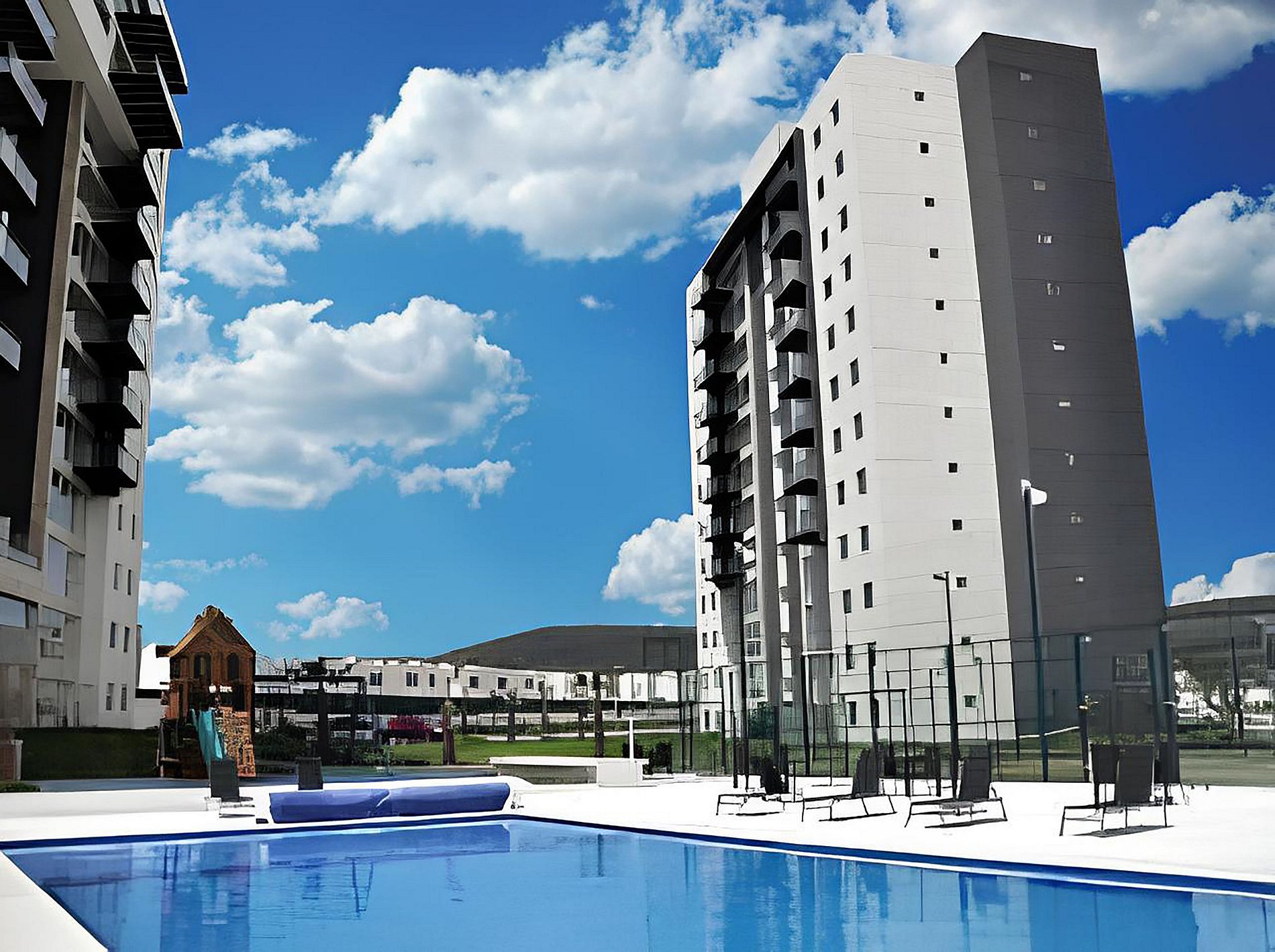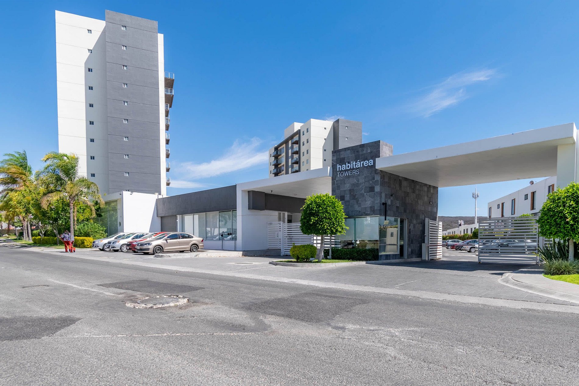 Habitarea Towers es un condominio con 3 torres de departamentos que cuenta con vigilancia las 24 hrs y amenidades como alberca, gimnasio, cancha de padel tenis, área de juegos infantiles, salón de usos múltiples, pista de jogging y estacionamiento para visitas.